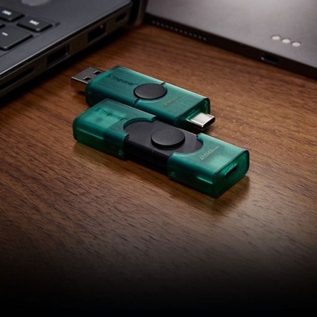 Kingston DataTraveler Duo - универсальный накопитель с двумя разъёмами USB Type-A и USB Type-C, обеспечивающий максимальную совместимость с различными устройствами. Удобная конструкция со сдвижными колпачками делает флешку стильной и удобной. Большой объём накопителя позволяет легко хранить и переносить фото, видео, документы и другие файлы между разными устройствами.