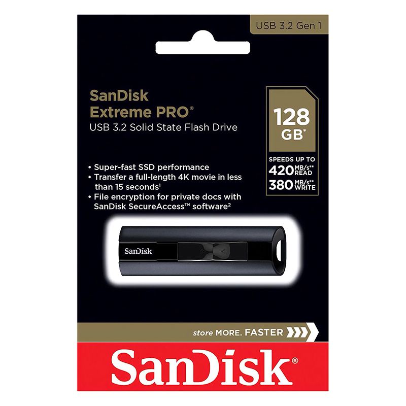Флеш-накопитель SanDisk Extreme PRO с интерфейсом USB 3.2, предназначенный для быстрой передачи больших файлов, обеспечивает максимальную производительность, чтобы вы могли работать в необходимом темпе. Накопитель обладает скоростью чтения до 420 Мб/с и записи до 380 Мб/c. Механизм-слайдер предусматривает отсутствие вечно теряющегося колпачка и обеспечивает максимальную простоту в использовании.Вы можете брать накопитель с собой: его изящный и при этом прочный алюминиевый корпус защитит его от износа и повреждений при частом использовании. Храните важные файлы в специальной папке, защищенной от несанкционированного доступа с помощью программы для шифрования SanDisk SecureAccess.