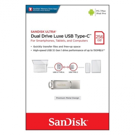 256Gb SanDisk Ultra Dual Drive Luxe, USB 3.1/Type C, металл (SDDDC4-256G-G46)