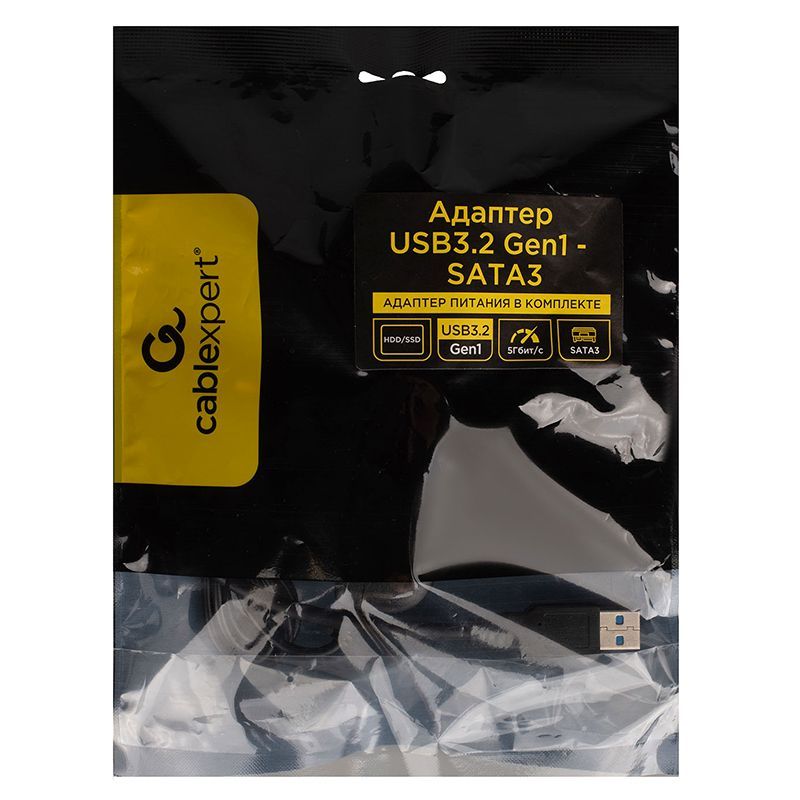 Кабель-адаптер Cablexpert A-USB3-SATA3-2.5 используется для подключения 2.5" HDD/SSD дисков с интерфейсом S-ATA к USB-порту компьютеру. Поддерживает высокоскоростной интерфейс USB 3.2 Gen 1, обеспечивающий скорость передачи данных до 5 Гбит/сек. Длина кабеля 30 см.