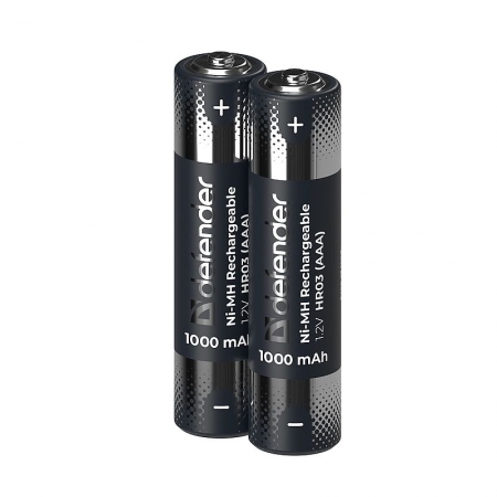 Аккумуляторные батареи AAA Defender 1000 мАч используются в устройствах, которые требуют больших запасов энергии. Рассчитаны на 500 циклов перезарядки. Не содержит ртуть, свинец и кадмий. Цена указана за 2 аккумулятора.