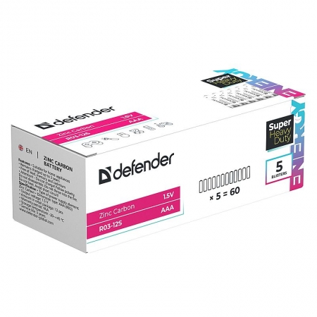 Батарейка AAA Defender Zinc R03-S12, 60 шт, коробка (56046)