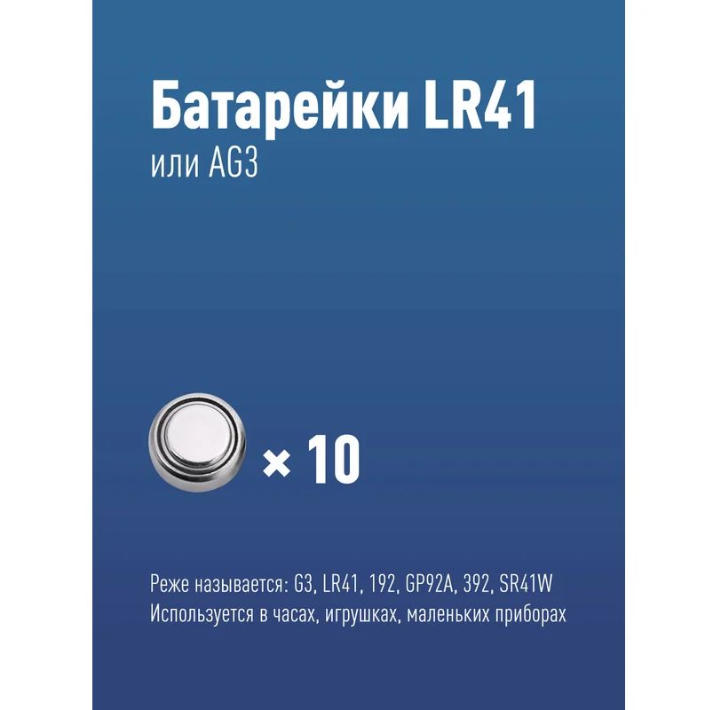 Главная / Электропитание / Батарейки / Батарейки для часов / Батарейка Космос AG3 392A/LR41/192 1.5V, 10 шт, блистер (KOCG3(LR41)10BL)