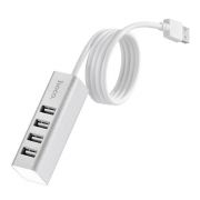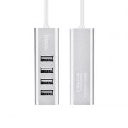 Производитель: Hoco Наименование: USB-разветвитель Кол-во USB-портов: 4 Интерфейс: USB 2.0 Пропускная способность интерфейса: до 480 Мбит/сек Питание: От USB Поддержка Plug-play и Hot-plug: Есть Длина кабеля: 80 см Материал корпуса: ABS-пластик Цвет: Серебристый/белый Размеры: 78 x 25 x 25 мм Вес: 63 г