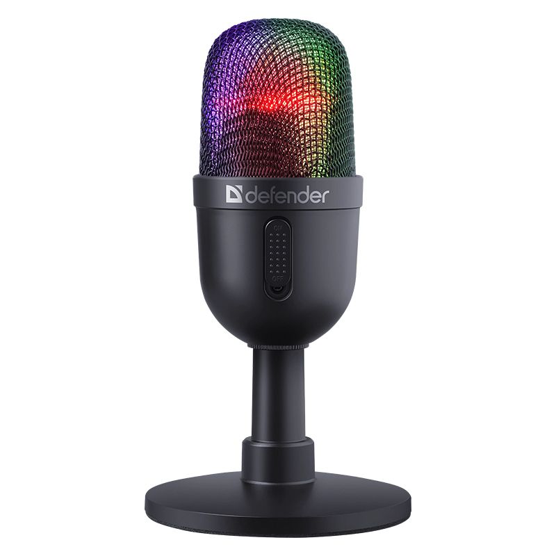 Defender Forte GMC 350 - базовый игровой микрофон с RGB-подсветкой и кнопкой выключения микрофона. Совместим с любыми ПК и ноутбуками с разъемом USB.