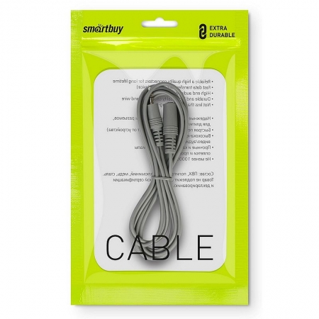 Производитель: Smartbuy Наименование: Аудио кабель удлинитель Разъемы: 3.5 мм (m) - 3.5 мм (f) Длина кабеля: 1.8 м Цвет: Серый