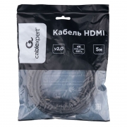 Кабель Cablexpert предназначен для подключения аудио и видео устройств с интерфейсом HDMI. Поддерживает разрешение 4K (60 Гц) и скорость передачи данных до 18 Гбит/c. Длина кабеля 5 метров.