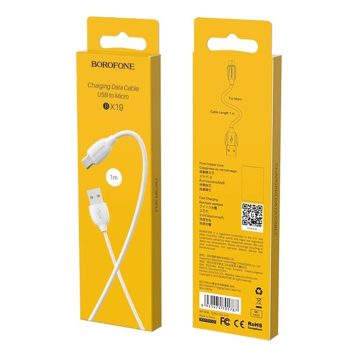 USB-кабель Borofone BX19 Benefit используется для подключения мобильной техники с разъемом Micro USB к компьютеру или зарядному устройству. Позволяет осуществлять зарядку и передачу данных. Изготовлен из высококачественных материалов и имеет длину 1 метр. Максимальная сила тока 2.4А.