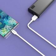 Type C к компьютеру или зарядному устройству. Обеспечивает передачу
