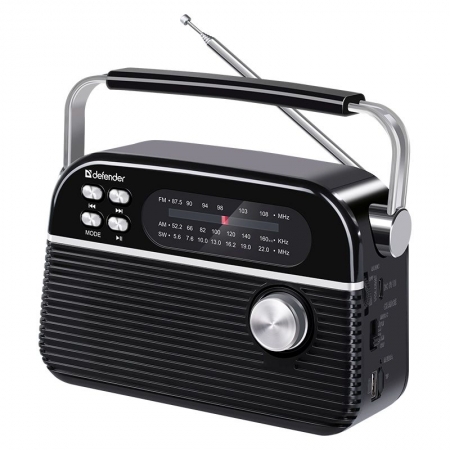 Радиоприемник Defender Vega, FM/AM/SW, Bluetooth, MP3, черный (65179)