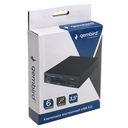 Внутренний картридер Gembird FDI2-ALLIN1-03-B предназначен для установки в 3,5 отсек системного блока. Устройство оснащено 5 слотами поддерживающими большинство типов карт памяти, индикаторами питания и передачи данных, а также портом USB 3.0. Подключается к 19-pin разъему на материнской плате.