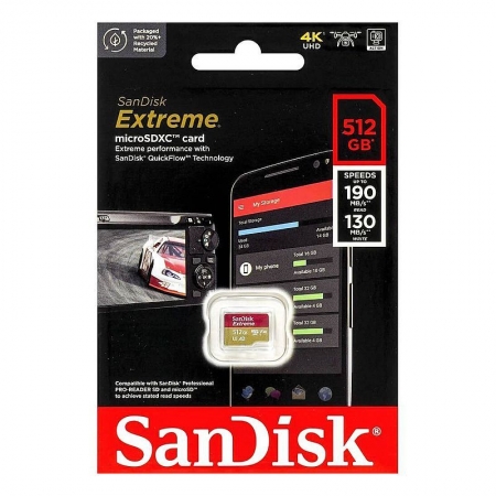 Карта памяти Micro SDXC 512Gb SanDisk Extreme U3 A2 V30 без адаптера (SDSQXAV-512G-GN6MN)
