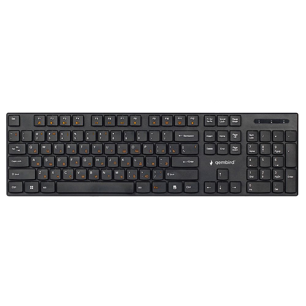 Gembird KBW-250 - полноразмерная мультимедийная беспроводная клавиатура. Модель выполнена в тонком корпусе и оснащена клавишами островного типа, которые отличаются низким ходом и пониженным уровнем шума. Также в клавиатуре имеются 12 дополнительных кнопок (Fn) для мультимедийными функциями. USB-ресивер подключается к USB-порту компьютера и не требует установки драйверов.