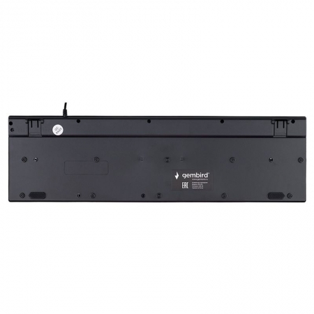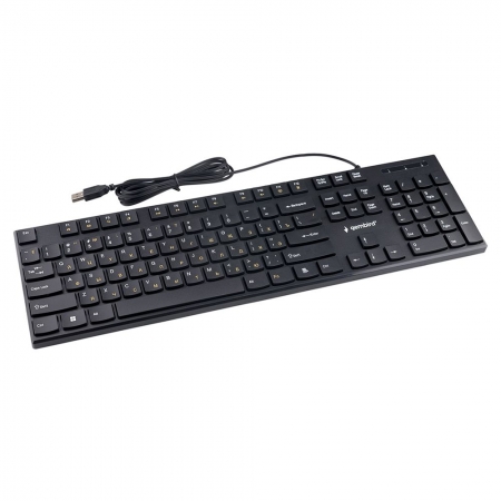 Производитель: Gembird Наименование: Проводная клавиатура Тип клавиатуры: Мембранная Количество клавиш: 104 Кол-во мультимедиа клавиш: 12 (Fn) Интерфейс подключения: USB Длина кабеля: 1.8 м Цвет: Чёрный Размеры: 446 х 138 х 25 мм Вес: 516 г
