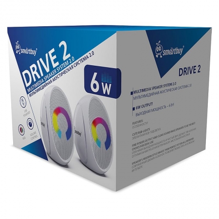 Колонки Smartbuy DRIVE 2, 6 Вт, подсветка, питание от USB, белые (SBA-6000)