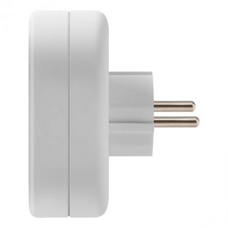 Переходник двойник предназначен для одновременного подключения двух электроприборов к одной сетевой розетке. Максимальная суммарная мощность подключаемых электроприборов - 2200 Вт.