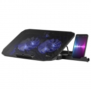 Defender NS-513 - компактная охлаждающая подставка с двумя мощными вентиляторами и регулируемым углом наклона для максимального комфорта при работе с ноутбуком. Фиксаторы для ноутбука обеспечат устойчивое положение техники на подставке.