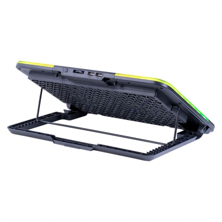 Defender NS-519 - минималистичный дизайн. Мощные вентиляторы. RGB подсветка. Идеальная подставка для ноутбука для работы дома или в офисе. Подойдет также для длительных игр на любимом ноутбуке.