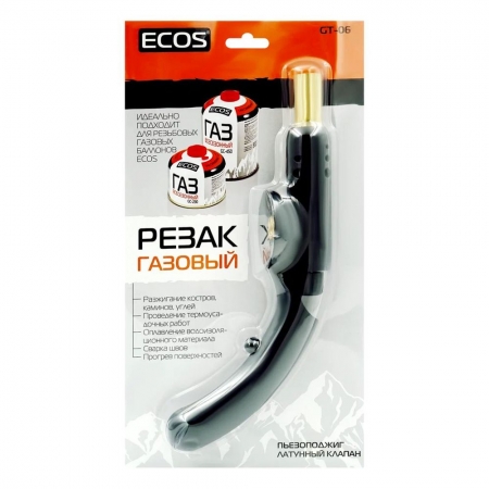 Газовый резак (лампа паяльная) с пьезоподжигом Ecos GT-06 предназначен для использования с резьбовыми газовыми баллонами/картриджами 7/16". Благодаря наличию пьезоподжига, такой горелкой удобно пользоваться одной рукой. Рекомендуется для разжигания костров/каминов/углей, проведения термоусадочных работ, оплавления водоизоляционного материала, сварки швов, прогрева поверхностей