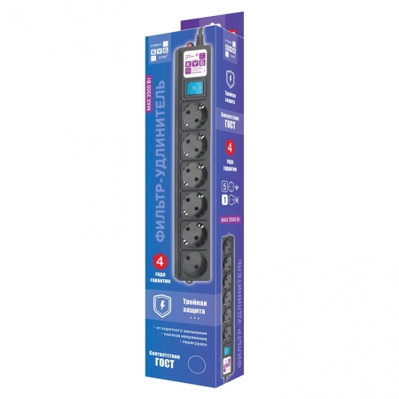 Сетевой фильтр Power Cube 3.5 кВт 16A, 1.9 м, 6 розеток, черный (SPG6-B1,9M)