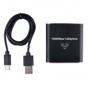 Сплиттер-разветвитель Cablexpert NCA-SP-03 на 2 порта RJ45. Поддерживает Gigabit Ethernet. Обеспечивает одновременную работу двух устройств. Питается от USB. Не поддерживает синхронную трансляцию IPTV на 2 ТВ.