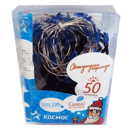Производитель: Космос Наименование: Светодиодная гирлянда Источник света: Светодиоды Кол-во светодиодов: 50 Материал кабеля: Медь Общая длина: 5.9 м Цвет: Синий Питание: От сети 220 В