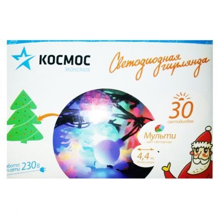 Производитель: Космос Наименование: Светодиодная гирлянда Кол-во светодиодов: 30 Кол-во режимов: 8 Цвет свечения: Мультиколор Питание: От сети 220 В Длина кабеля: 4.4 м Вес: 270 г Размеры упаковки: 18 х 8 х10 см