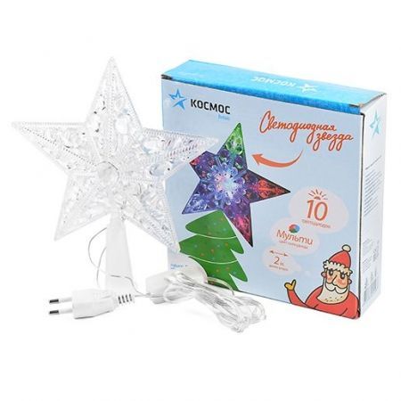Светодиодная гирлянда Космос "Звезда" станет отличным завершающим элементом в праздничном наряде новогодней елки. Модель оснащена 10 светодиодами, которые светятся различными цветами. В отличие от микроламп, светодиоды экономят до 90% энергии, не нагреваются и не выходят из строя. Надежные светодиоды технологии Super Flux имеют повышенную светоотдачу, а качественный провод из 100% меди обеспечивает полную пожаробезопасность.