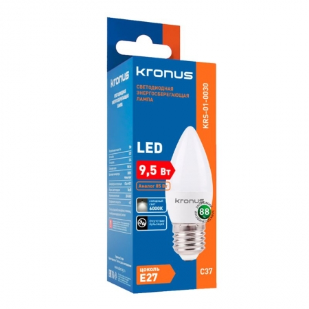 Kronus С37 - энергосберегающая светодиодная лампа общего или декоративного освещения, подходит для замены стандартных ламп накаливания и галогенных. Благодаря своей экономичности, длительному сроку службы и экологичности она выгодно отличаются от обычной лампы накаливания. Лампа С37 повторяет форму и размеры стандартных ламп типа «свеча» и идеально подходит к любому светильнику, в котором используются данные типы ламп. Колба лампы имеет матовую поверхность и оснащена цоколем E27. Хорошая цветопередача и отсутствие мерцания обеспечивают меньшую утомляемость глаз. В лампе применяется высокоэффективный драйвер с ресурсом работы до 30 000 часов. Не содержит ртути и экологически безопасна.