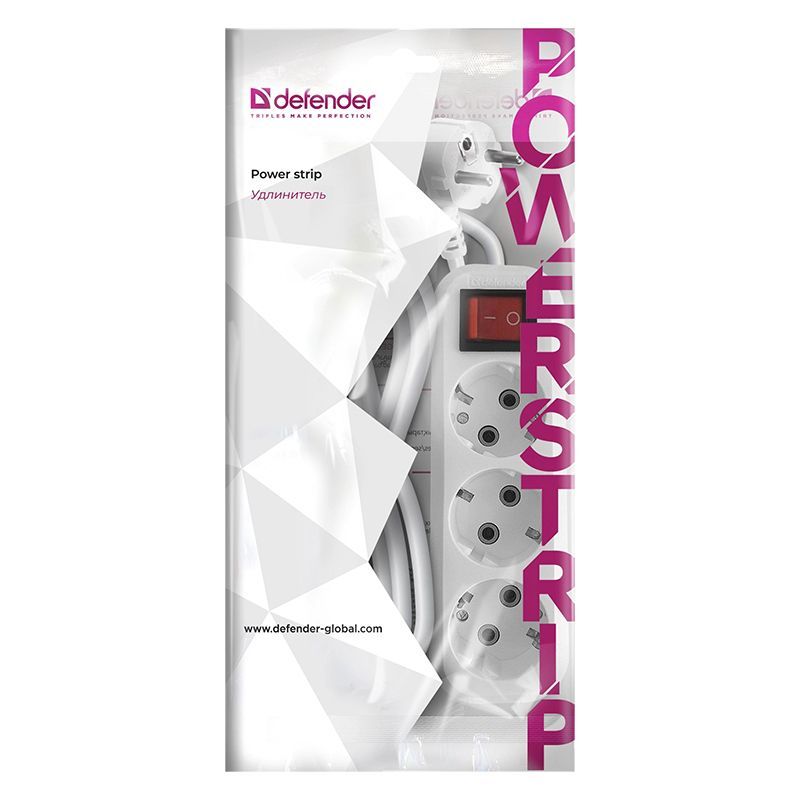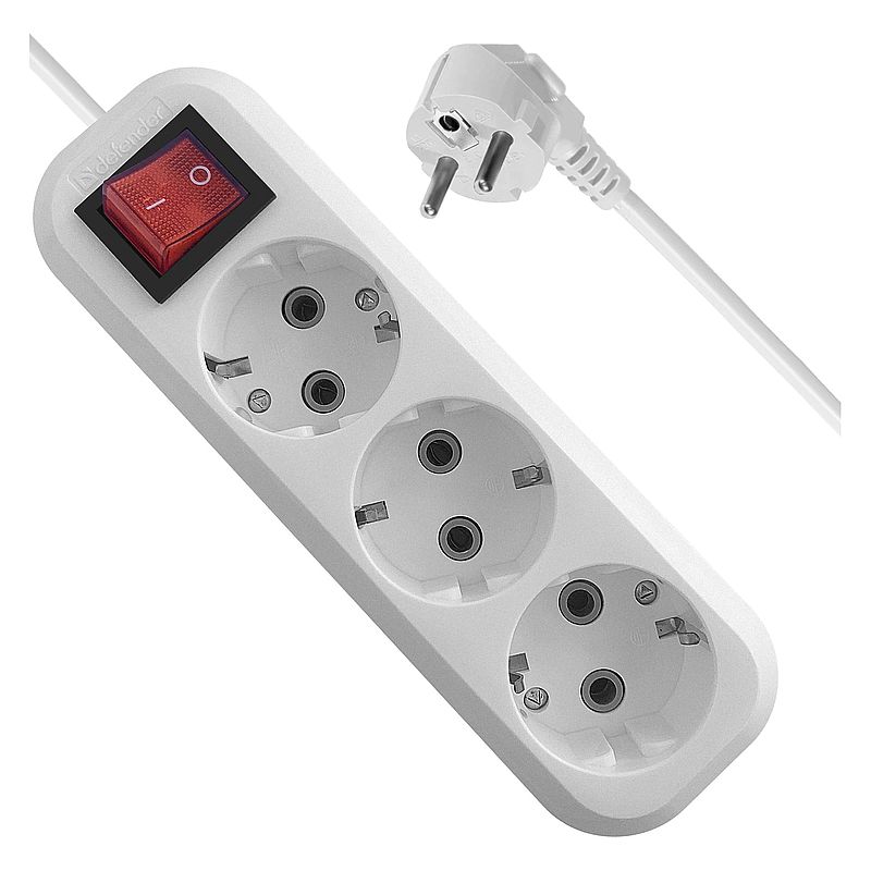 Главная / Электропитание / Сетевые фильтры и удлинители / Удлинитель сетевой Defender L330, 1.5 м, 3 розетки с заземлением, выключатель, 3500 Вт, белый (99356