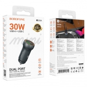Зарядное автомобильное устройство Borofone BZ32A QC3.0/PD30W, USB-A/C, серое