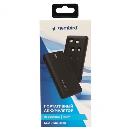 Зарядное устройство Gembird GPB-10C, 10000 мА/ч, 2A, 4 встр. кабеля, черное