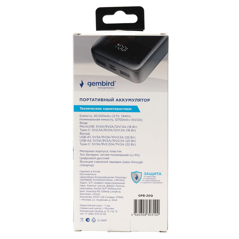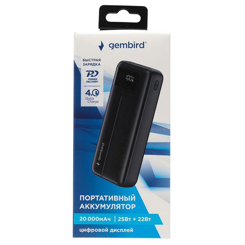 Внешний аккумулятор Gembird GPB-20Q обеспечит мобильную технику необходимым резервным питанием во время поездок и путешествий. Устройство оснащено литий-полимерной батареей емкостью 20000 мАч и поддерживает стандарты быстрой зарядки QC/PD/FCP/SCP/AFC. Благодаря двум USB-выходам и выходу USB-C вы сможете заряжать 3 устройства одновременно. Для зарядки повербанка имеются два входа Micro USB и USB C. Функция сквозной зарядки (pass-through charging) позволяет одновременно заряжать повербанк и подключенное устройство. Контроль за уровнем заряда аккумулятора осуществляется с помощью цифрового дисплея. Благодаря компактной конструкции и небольшому весу зарядное устройство будет удобным для использования в поездках.