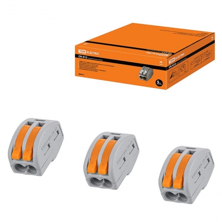 Cоединительная клемма с рычажками, 2 отверстия, 2.5 мм2, 100 шт, TDM СК-412 (SQ0527-0001)