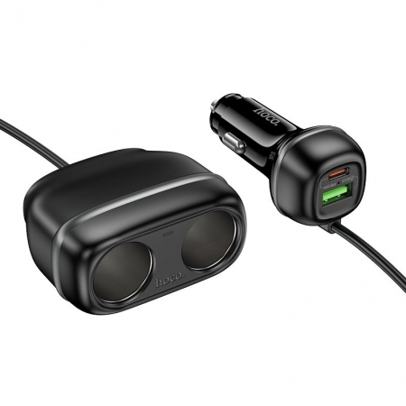 Зарядное автомобильное устройство Hoco Z59 QC3.0/PD30W, USB-A+C + 2 прикуривателя, черное