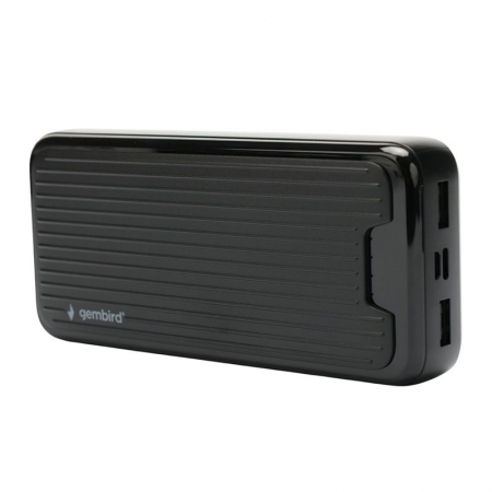 Зарядное устройство Gembird GPB-20Q, 20000 мА/ч, QC/PD, 2xUSB A + C, дисплей, черное