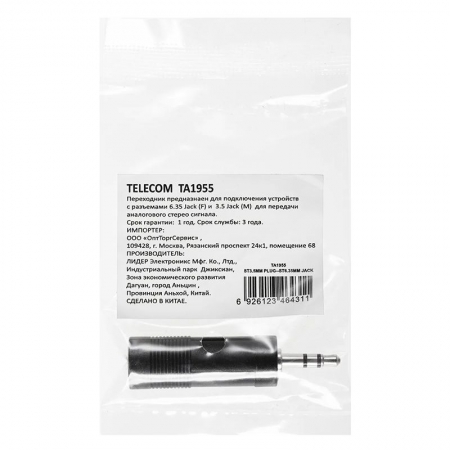 Аудио-адаптер Telecom TA1955 предназначен для передачи аналогового стереосигнала. С его помощью вы можете подключить наушники или другие аудиоустройства с разъемом 6.3 мм (джек 1/4") к разъему мини джек 3.5 мм. Технические характеристики