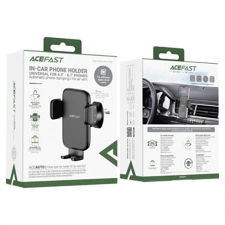 Автомобильный держатель Acefast D27 предназначен для установки смартфона, навигатора и других устройств с диагональю от 4.5" до 6.7" на вентиляционной решетке автомобиля. Наклонно-поворотный механизм и надежный зажим позволяют зафиксировать мобильное устройство в любом положении. Особенности