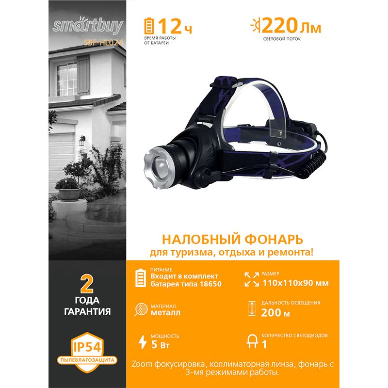 Smartbuy SBF-HL024 - мощный налобный светодиодный фонарь, который обеспечивает яркое и стабильное освещение. Он оснащен светодиодом 5 Вт, что гарантирует отличную видимость даже в условиях низкой освещенности. Фонарь имеет 3 режима работы: яркий, средний и стробоскоп. Это позволяет выбрать наиболее подходящий режим в зависимости от ситуации. Дальность освещения составляет до 200 метров, что делает его отличным выбором для использования на открытом воздухе.