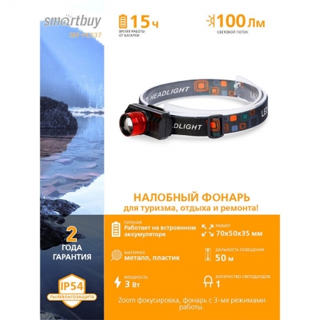 Налобный фонарь SmartBuy SBF-HL037 является идеальным решением для любителей пешего туризма, альпинизма и походов за грибами. Устройство оснащено 1 светодиодом CREE XPE повышенной мощности 3 Вт обеспечивающим яркое освещение. Дополнительным преимуществом является возможность выбора разных режимов освещения. Вы можете настроить интенсивность света под конкретные задачи от мягкого подсвечивания до мощного направленного потока света. Также имеется функция фокусировки луча. Особое внимание уделено комфорту при ношении: регулируемый ремешок позволяет надежно закрепить осветительный прибор на голове, обеспечивая плотную посадку без дискомфорта. Эргономичный дизайн обеспечивает легкость устройства, что особенно важно при длительном использовании. Работает фонарь от литиевого аккумулятора 1200 мАч. В комплекте USB кабель для подзарядки.