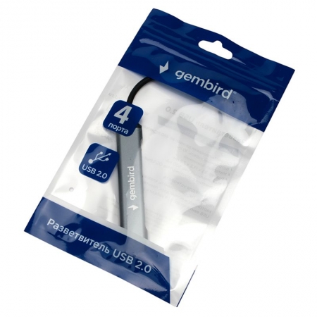 Производитель: Gembird Наименование: USB-разветвитель Кол-во USB-портов: 4 Интерфейс: USB 2.0 Пропускная способность: До 480 Мбит/сек Максимальный ток: 500 мА Длина кабеля: 10 см Материал корпуса: Металл Цвет: Серый Размеры: 83 х 7.2 х 17.2 мм