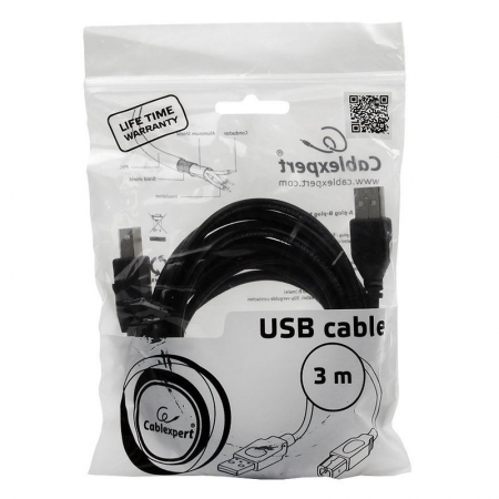 Производитель: Cablexpert Наименование: USB-кабель Разъемы: USB AM - BM Интерфейс: USB 2.0 Скорость передачи данных: до 480 Мбит/сек Максимальный ток: 2.4 А Материал проводников: Медь Толщина жил (передача данных / питание): 28 / 26 AWG Экранирование: Двойное (фольга + сетка) Длина кабеля: 3 м Цвет: Черный
