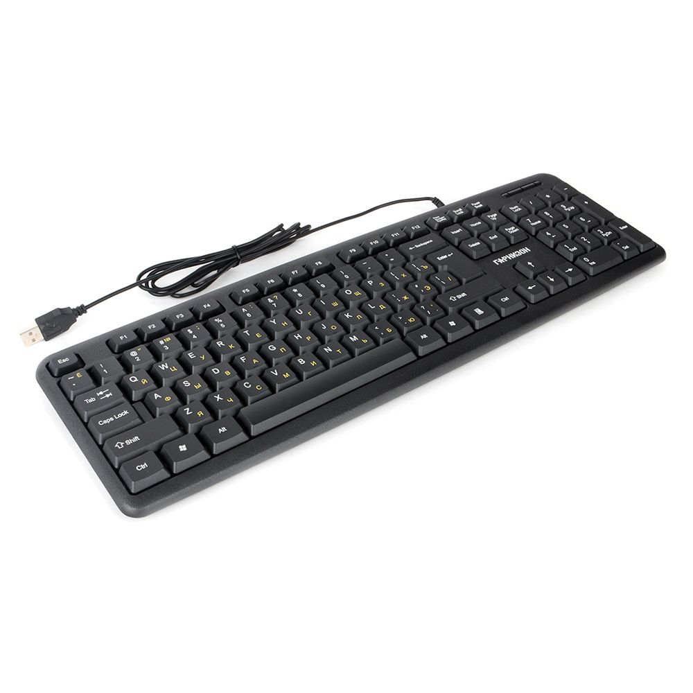 Проводная клавиатура Гарнизон GK-100L для дома и офиса. Устройство оснащено стандартной раскладкой с удобными клавишами, обладающими хорошей тактильной отдачей для комфортного набора текстов. Регулируемый угол наклона способствует естественному положению рук во время работы. Клавиатура подключается к USB-порту компьютера и не требует установки драйверов.