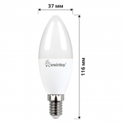 Smartbuy С37 - энергосберегающая светодиодная лампа общего или декоративного освещения, подходит для замены стандартных ламп накаливания и галогенных. Благодаря своей экономичности, длительному сроку службы и экологичности она выгодно отличаются от обычной лампы накаливания. Лампа С37 повторяет форму и размеры стандартных ламп типа «свеча» и идеально подходит к любому светильнику, в котором используются данные типы ламп. Колба лампы имеет матовую поверхность и оснащена цоколем E14. Хорошая цветопередача и отсутствие мерцания обеспечивают меньшую утомляемость глаз. В лампе применяется высокоэффективный драйвер с ресурсом работы до 30 000 часов. Не содержит ртути и экологически безопасна. Цена указана за 10 ламп. Особенности