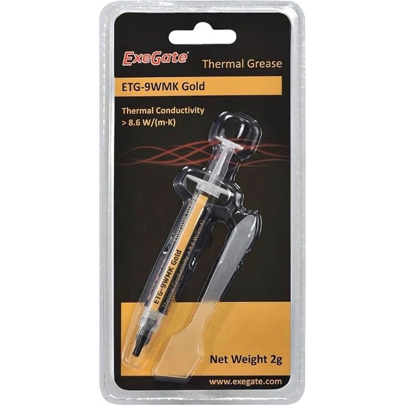 Термопаста ExeGate ETG-9WMK Gold имеет высокий коэффициент теплопроводности и обеспечивает эффективное рассеивание тепла. Обладает оптимальной консистенцией. Герметичный шприц удобен при дозировке и нанесении пасты на охлаждаемую поверхность. Лопатка в комплекте для равномерного нанесения.