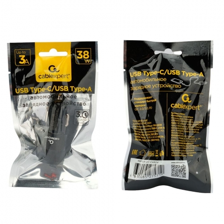 Зарядное автомобильное устройство Cablexpert MP3A-UC-CAR24, QC3.0/PD 38W, USB-A+C, черное