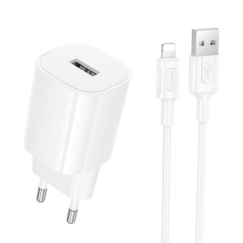 Зарядное устройство Borofone BA101A предназначено для зарядки мобильной техники от электросети 100-240В. Адаптер имеет один USB порт с выходным током 2.1 А. Зарядное устройство имеет защиту от перенапряжения, перегрузки и перегрева. Корпус изготовлен из термостойкого и ударопрочного пластика. В комплект входит кабель Lightning длиной 1 метр.