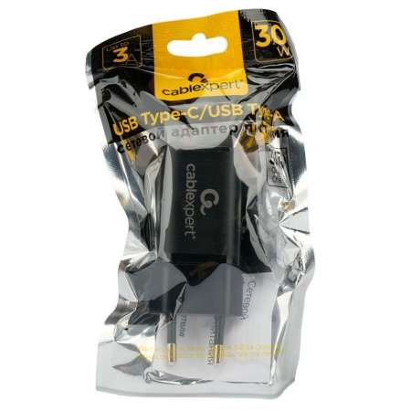 Cablexpert MP3A-PC-43 - новый тип зарядного устройства (GaN) с применением нитрида галлия для повышения энергоэффективности и снижения тепловыделения. Поддерживаемые стандарты быстрой зарядки: QC 2.0/3.0, PD, FCP, AFC. Максимальная выходная мощность: 30 Вт. Модель оснащена портами USB C и USB A. Имеет защиту от перенапряжения, перегрузки, перегрева и короткого замыкания. Корпус зарядного устройства изготовлен из термостойкого и ударопрочного пластика. Технические характеристики