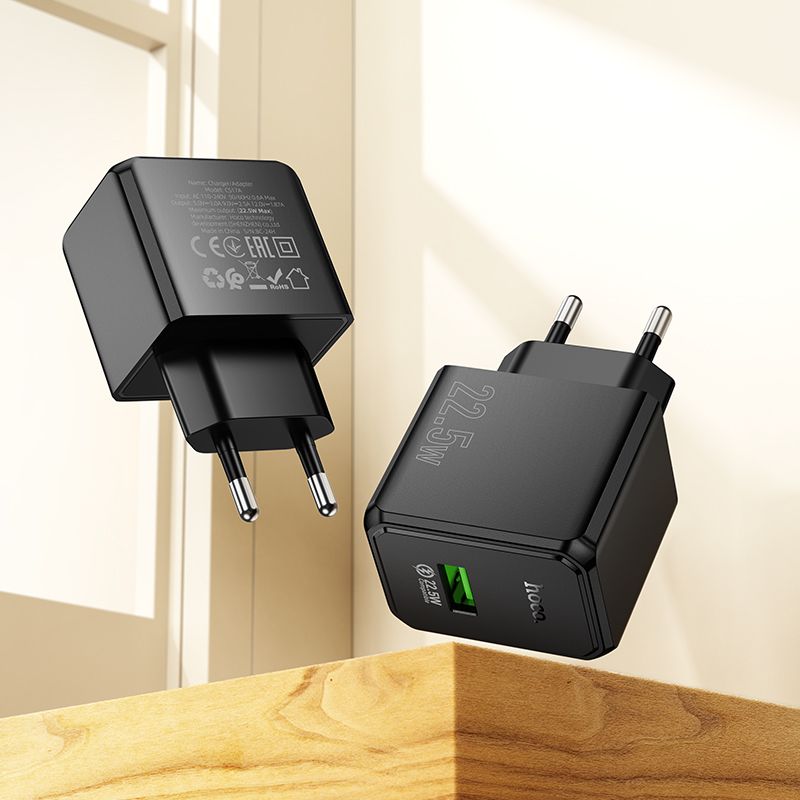Hoco CS17A Wish - сетевое зарядное устройство с поддержкой стандартов быстрой зарядки QC3.0/2.0, FCP, AFC, SCP. Адаптер обладает мощностью 22.5 Вт и оснащен портом USB-A. Корпус выполнен из термостойкого и ударопрочного пластика. В комплект входит кабель Type C длиной 1 метр.