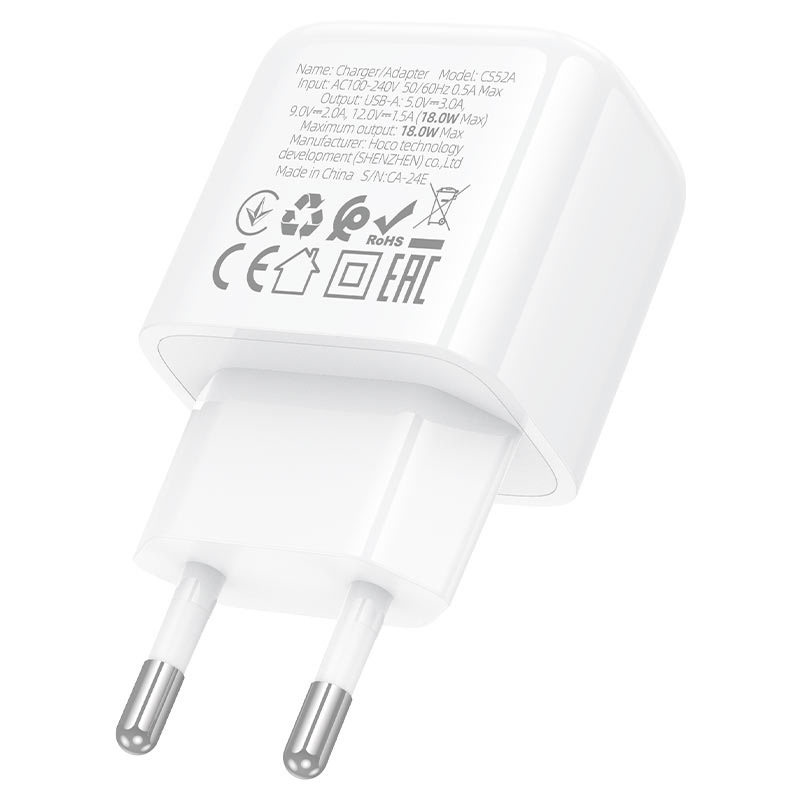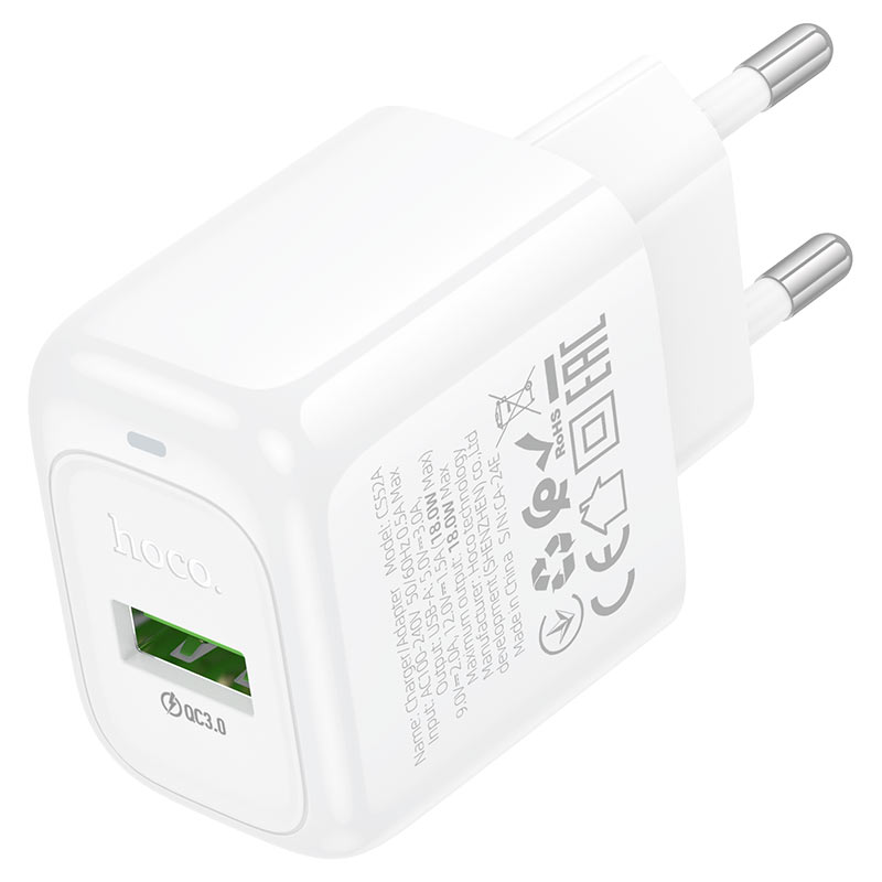 Зарядное устройство Hoco CS52A Surplus предназначено для зарядки мобильной техники от сети с напряжением 100-240В. Адаптер оснащен одним USB портом, поддерживает стандарты быстрой зарядки QC3.0/QC 2.0, Huawei FCP и Samsung AFC. Также его можно использовать для зарядки обычных USB-устройств. Многоуровневая защита от короткого замыкания, перенапряжения, скачков напряжения, перегрева и перезаряда помогает обезопасить подключенные устройства от поломки. Корпус выполнен из термостойкого и ударопрочного пластика.